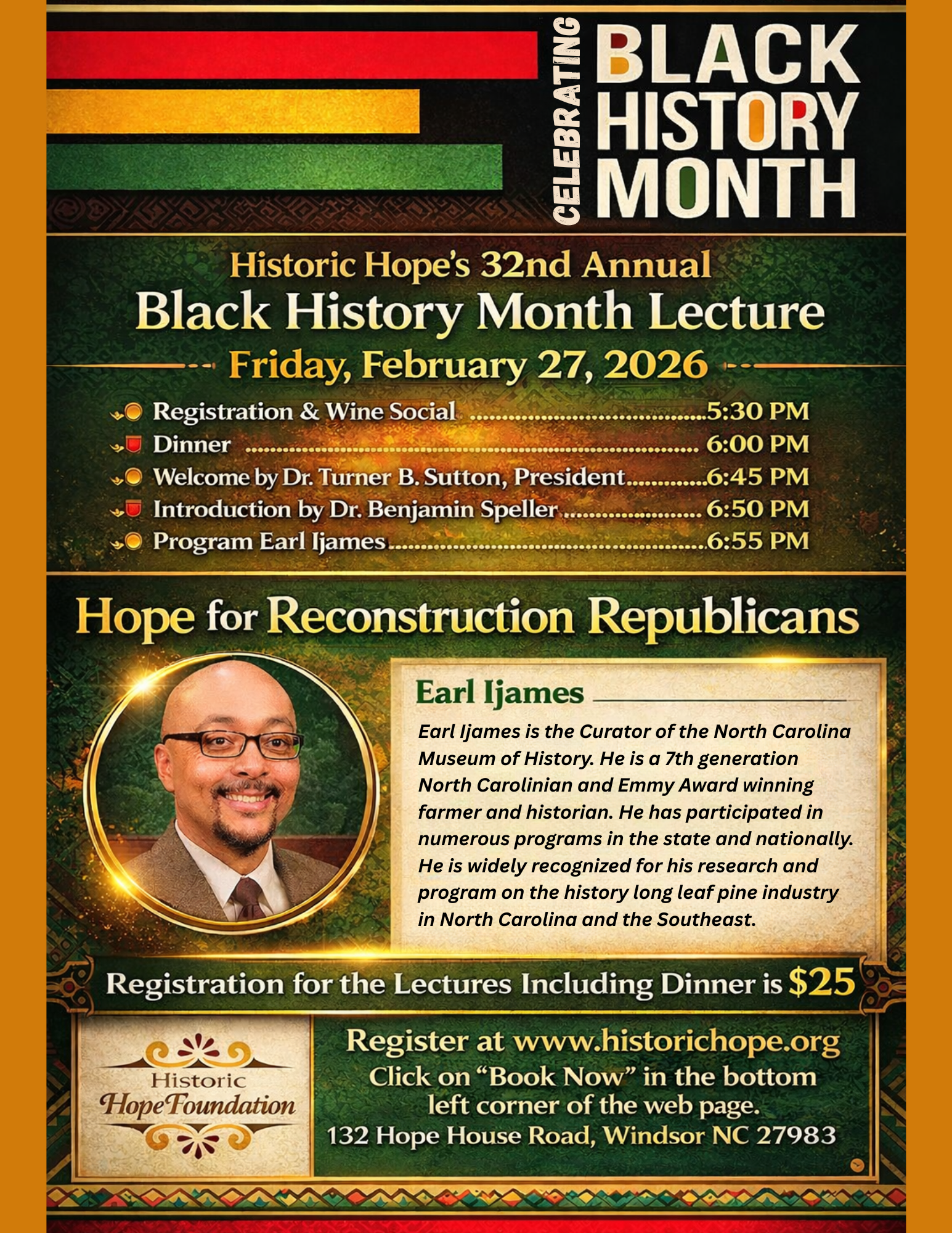 Don't miss out on Historic Hope's 32nd Annual Black History Month Lecture featuring "Hope for Reconstruction Republicans" by Earl Ijames on February 27th! Register by February 25th for dinner and an enlightening lecture. You can register by clicking … [Read More...]