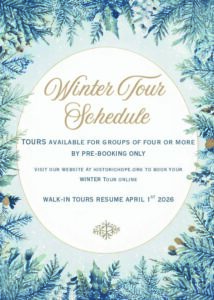 Get ready to explore Historic Hope during our Winter Tour Schedule! Gather your friends and pre-book a tour for an unforgettable experience. Don't miss out and reserve your spot now! … [Read More...]